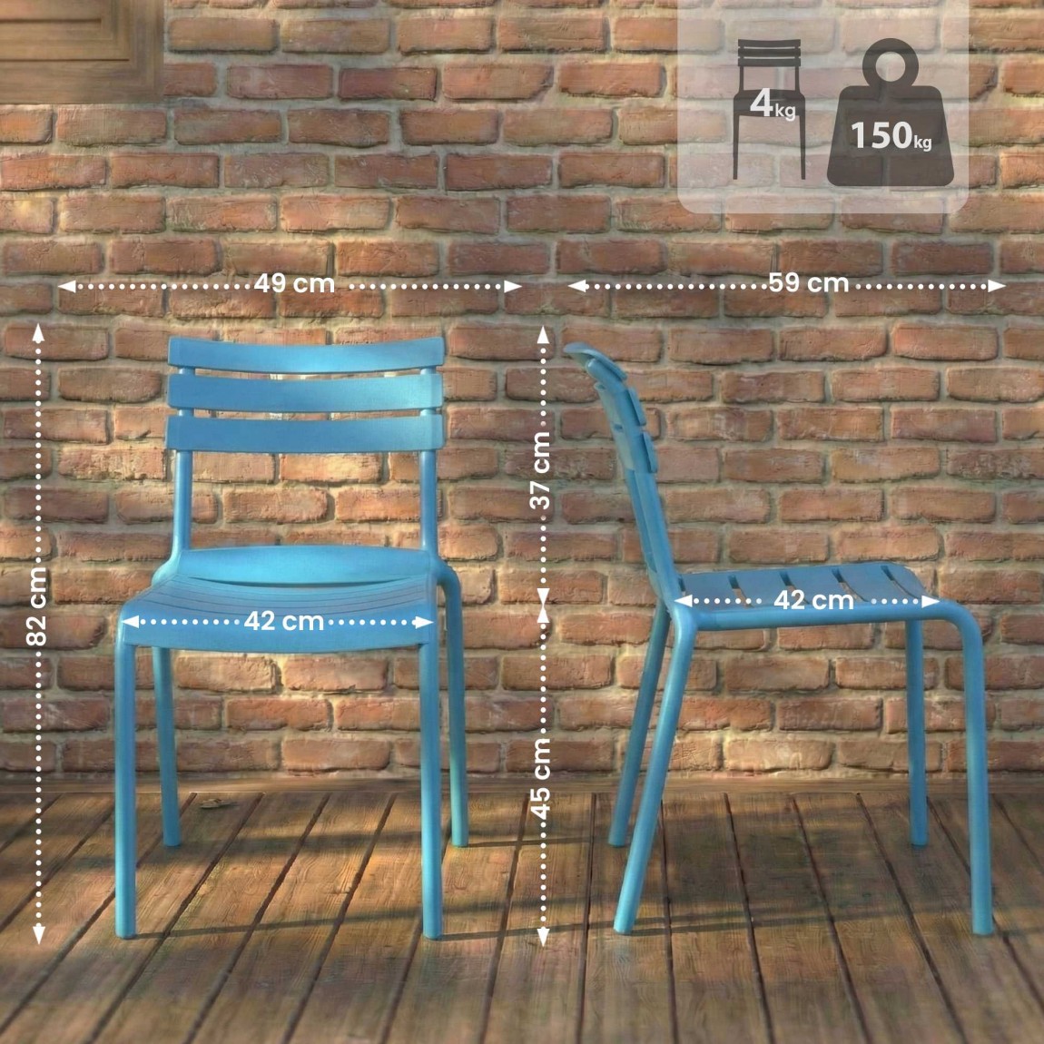 Ypač praktiška mažesnėms erdvėms yra galimybė modelį sukrauti vieną ant kito. Svoris tik 4 kg, todėl kėdę galima lengvai perkelti ir, jei reikia, akimirksniu sutaupyti vietos ją sudėjus. Įspūdinga apkrova iki 150 kg pabrėžia tvirtą gamybos kokybę.