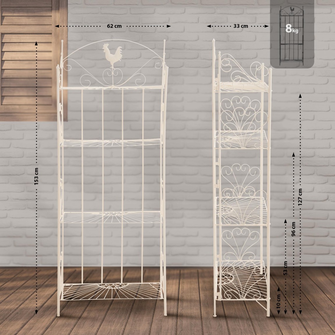 Į krepšelįSulankstomas stovas CiaraStovas Ciara yra universalus ir dekoratyvus kaimiško stiliaus stovas, tinkamas naudoti tiek viduje, tiek lauke. Penkios sulankstomos lentynos suteikia pakankamai vietos augala..